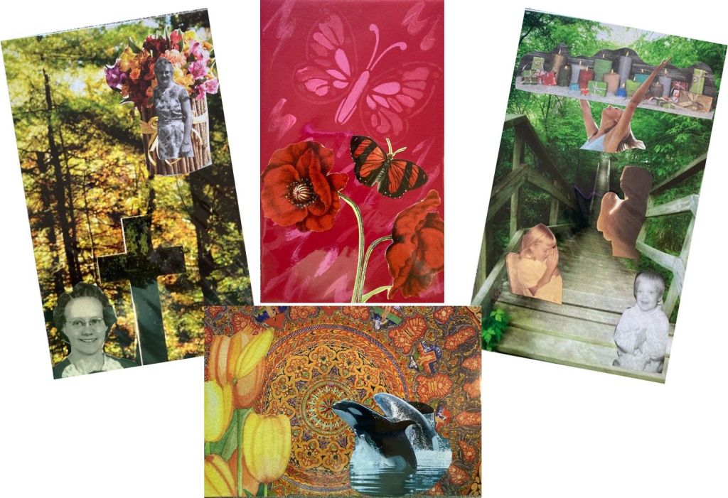 I am a self-taught artist who takes the process of collage, and allows it to inspire my class participants to find meaning in their own creations. My passion is watching those moments of insight and creativity emerge!